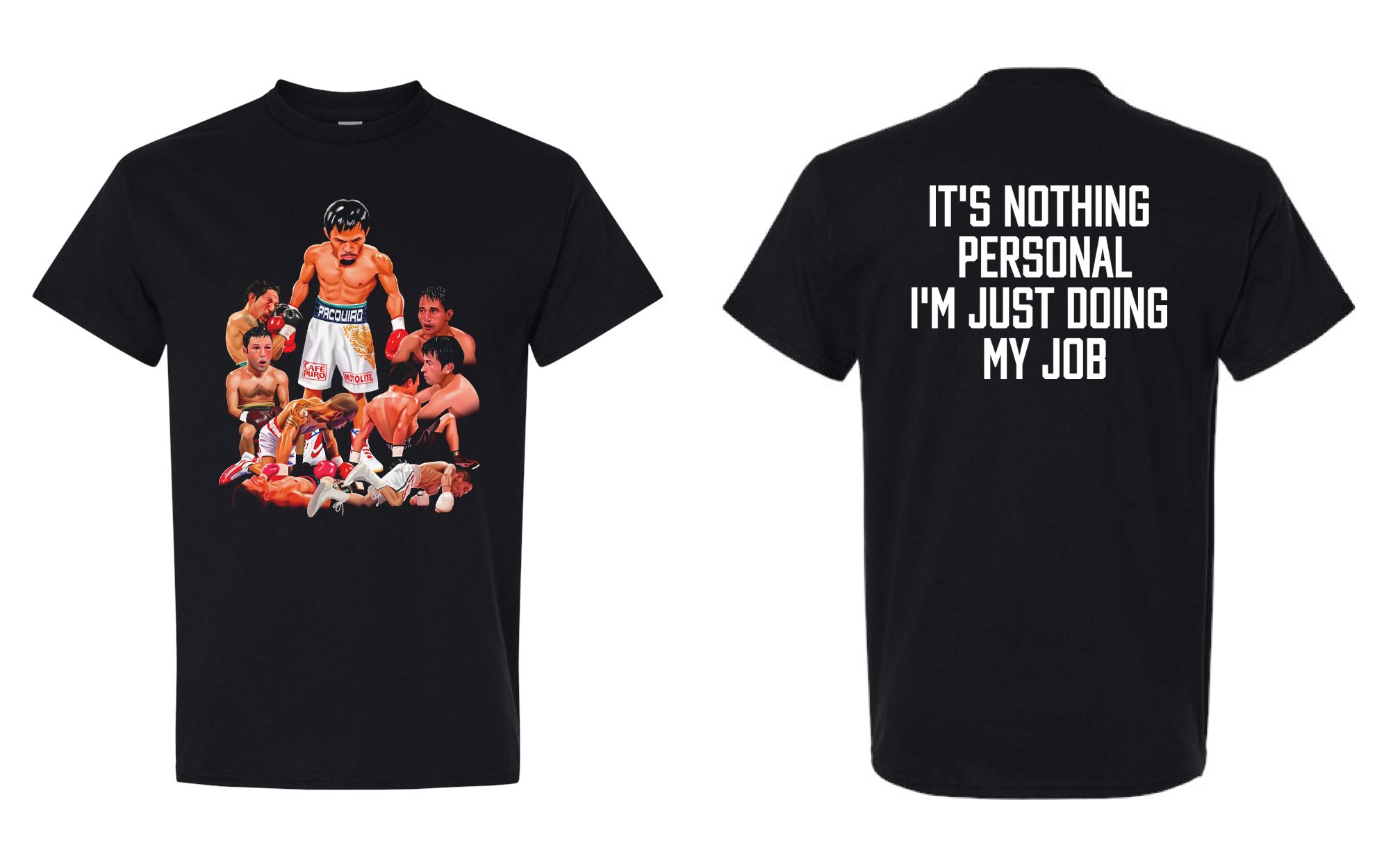 This shirt pays homage to the ring icon’s ruthless legacy. The back hits even harder with a cold message: “IT’S NOTHING PERSONAL, I’M JUST DOING MY JOB.”